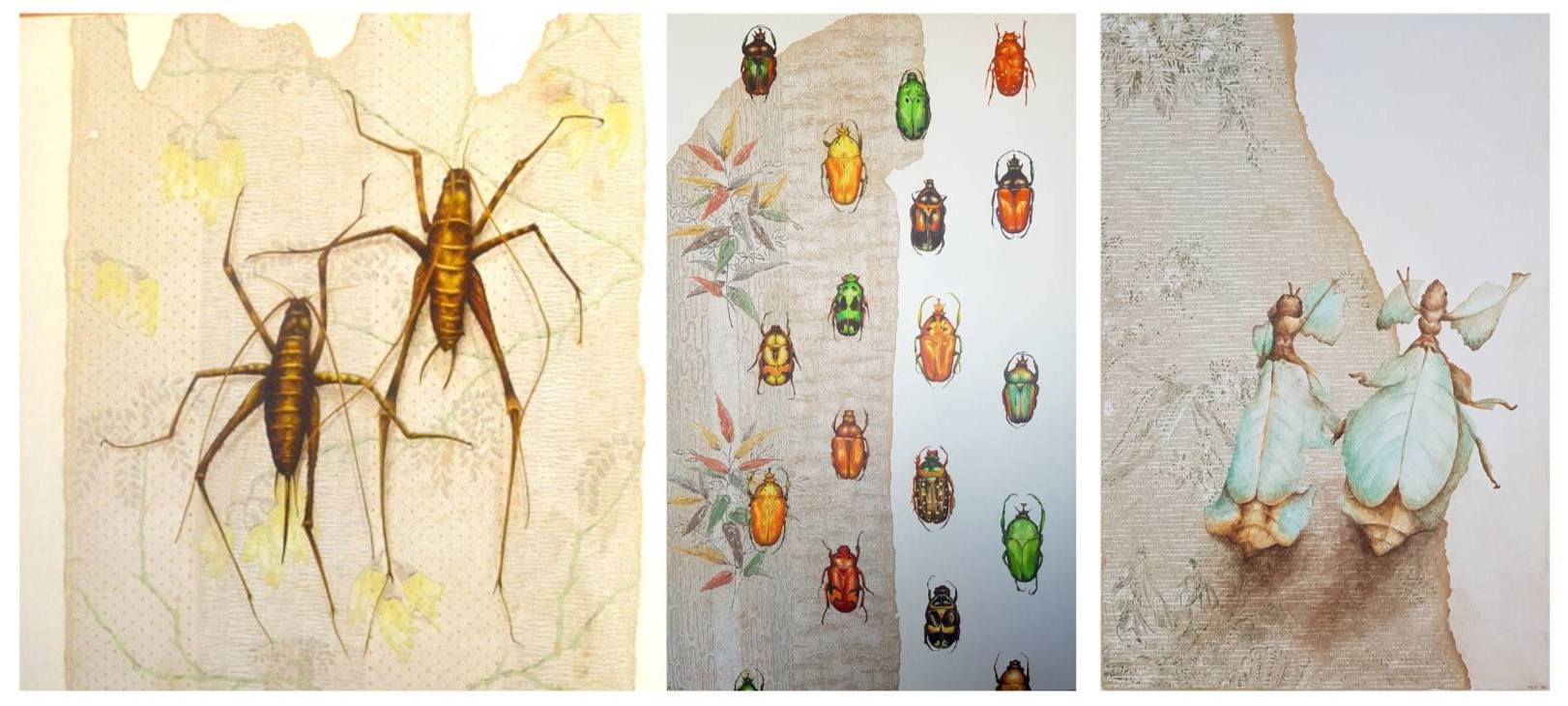 Beautiful pieces featuring wallpaper and bugs by Jane Thorne