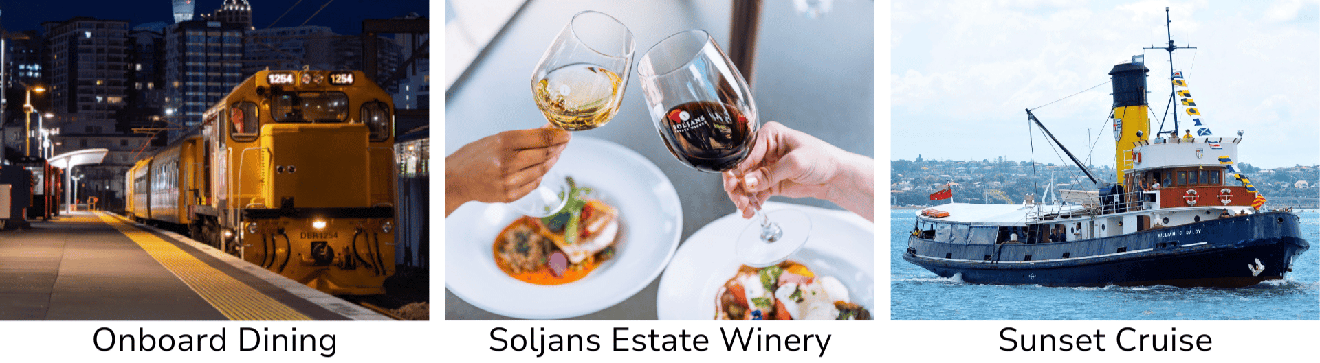 🚂 Western Wine & Dine Express Departs Waiuku, Glenbrook, Pukekohe, or Papakura | Evening Ride the Glenbrook Vintage Railway and enjoy a unique dinner: Soljans Winery buffet, steamship cruise, or onboard dining. Book now