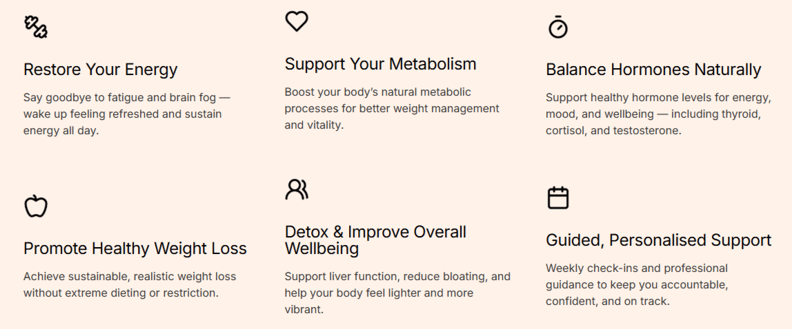 Simple meal plans and weekly check-ins 🥗 - practical, non-extreme nutrition, plus 30-min support sessions to keep you accountable long-term.
